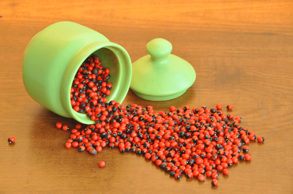 Usage: Lal Gunj are distinctive-looking bright red seeds with a black tips. The seeds are poisonous in nature and cannot be consumed without purifying. Apart from various medicinal uses (post purification), the seeds are also used as jewellery; and also as weapon in some countries.